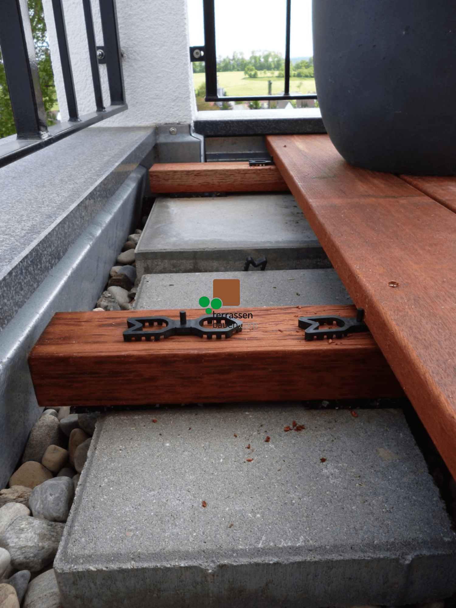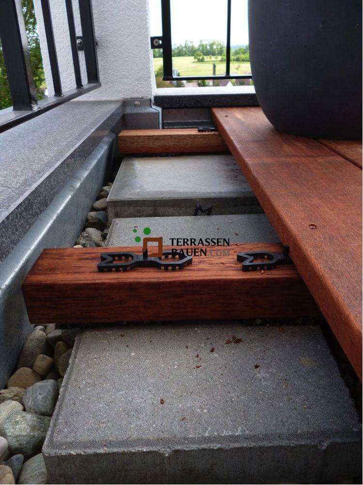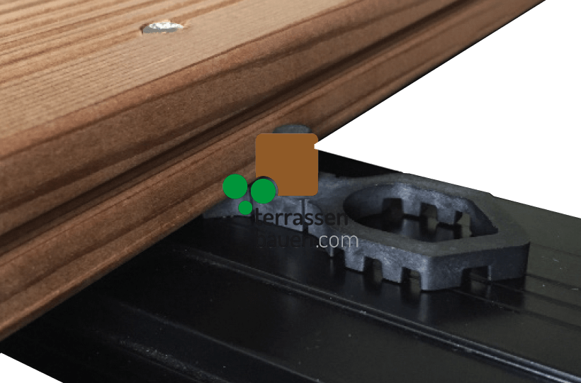 Der Terrafix garantiert Ihnen außerdem die für die Belüftung erforderlichen Abstände zwischen den einzelnen Terrassendielen und den darunter liegenden Tragbalken (konstruktiver Holzschutz). Dadurch ist gewährleistet, dass die Staunässe abtrocknen kann.
