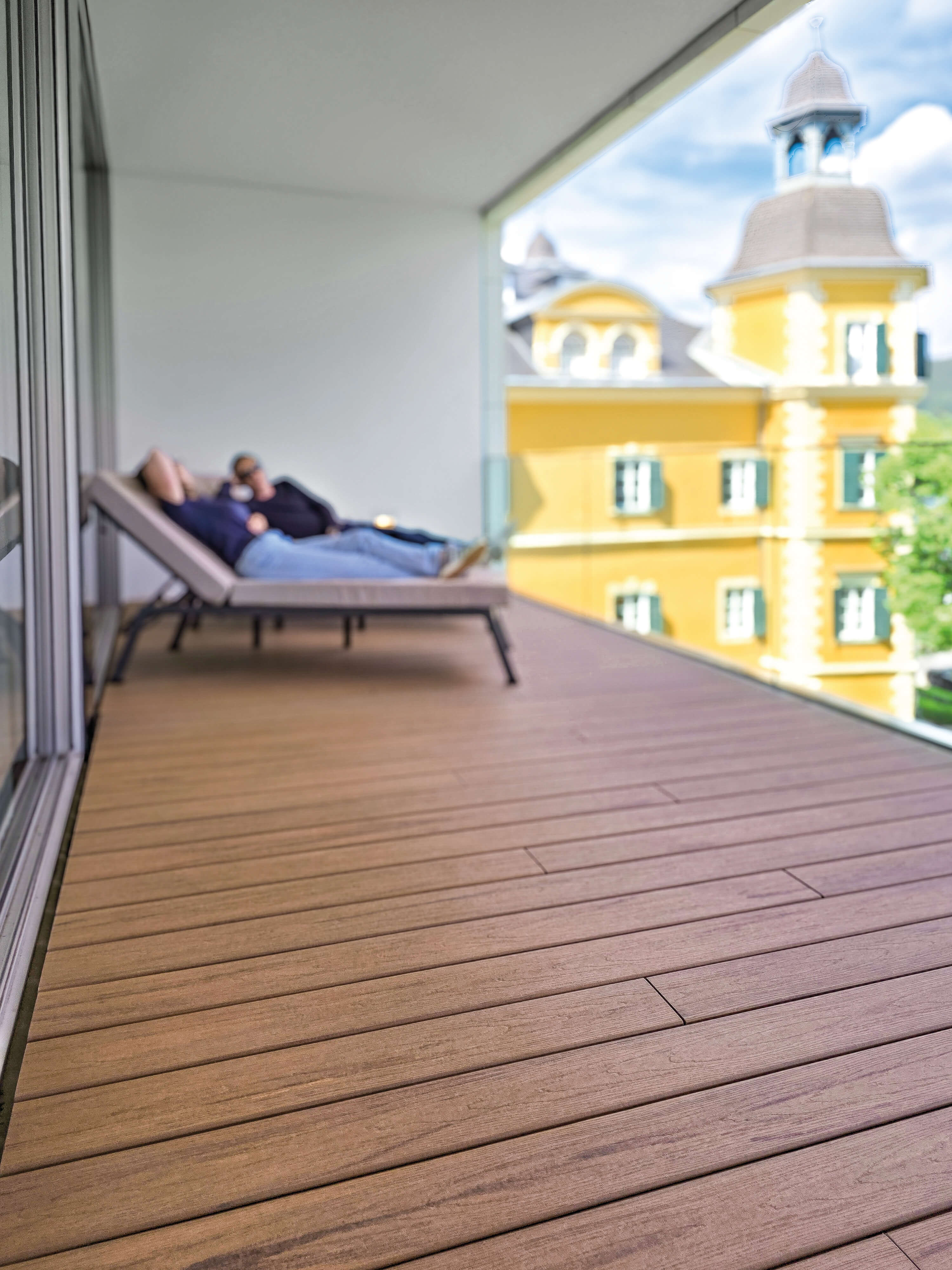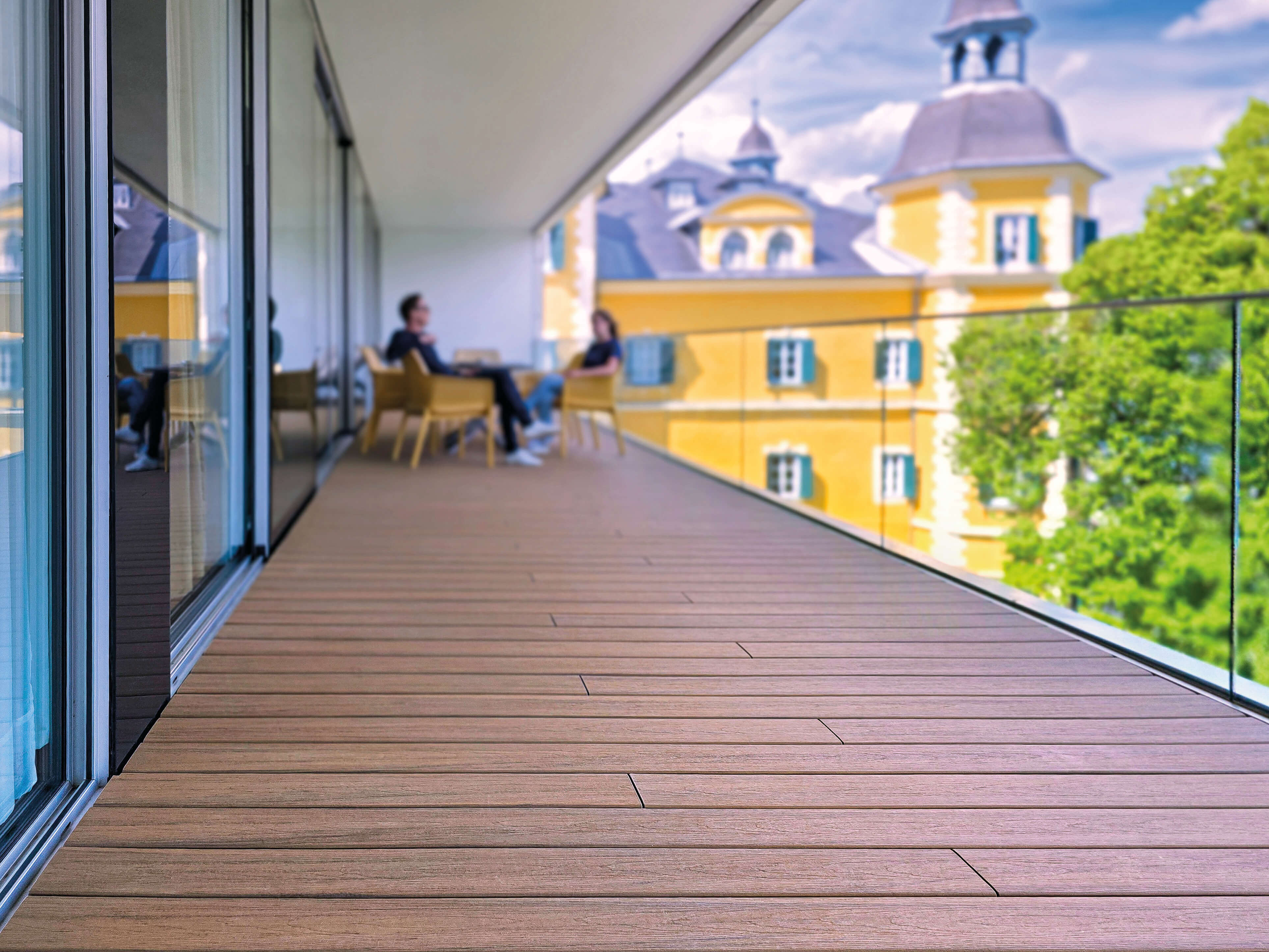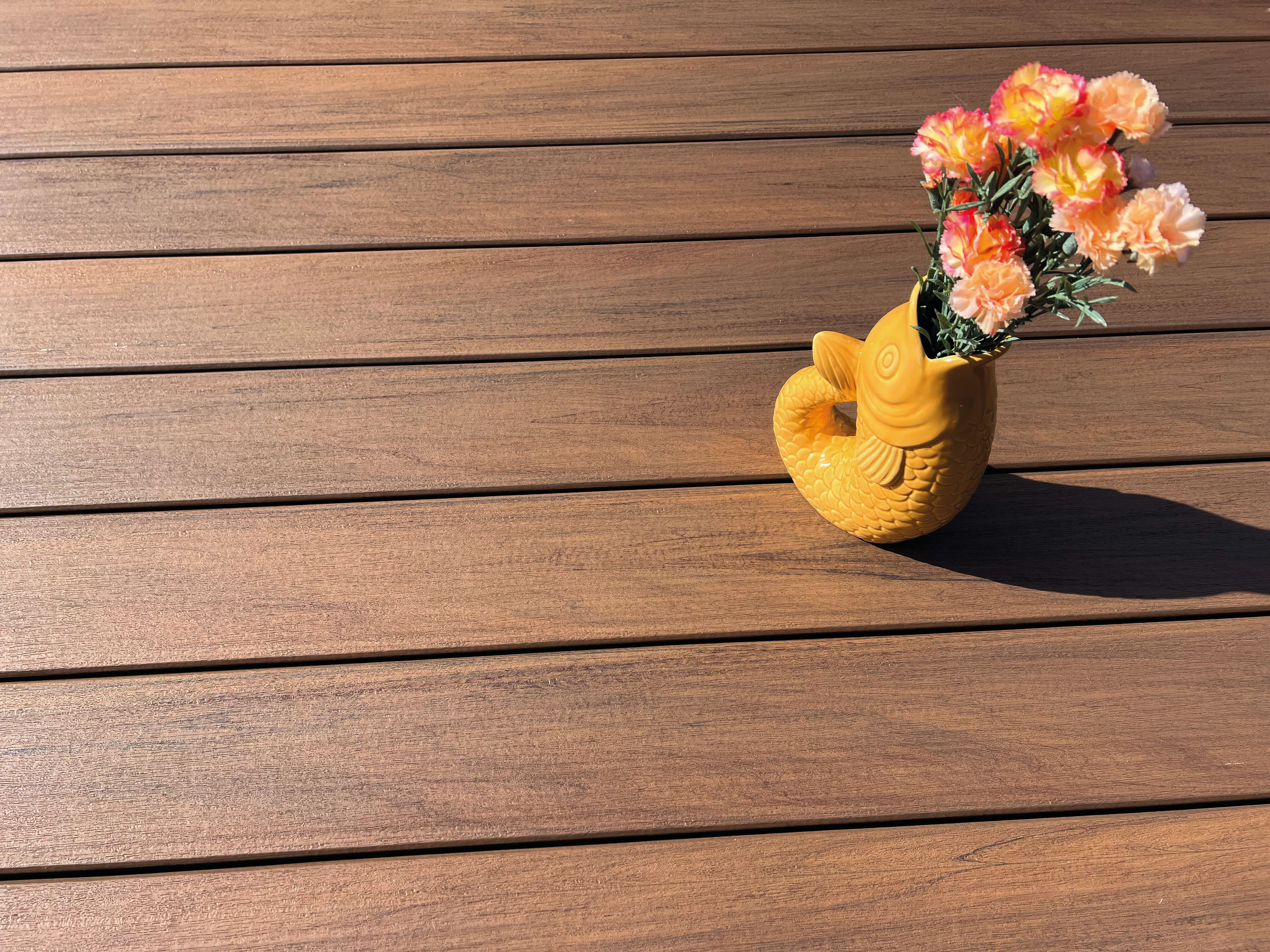 Durch die robuste Coextrusion eignet sich diese WPC-Diele ideal für Terrassen, Balkone und Poolbereiche. Sie bietet eine langlebige Optik, bleibt formstabil und ist besonders angenehm begehbar – auch barfuß.