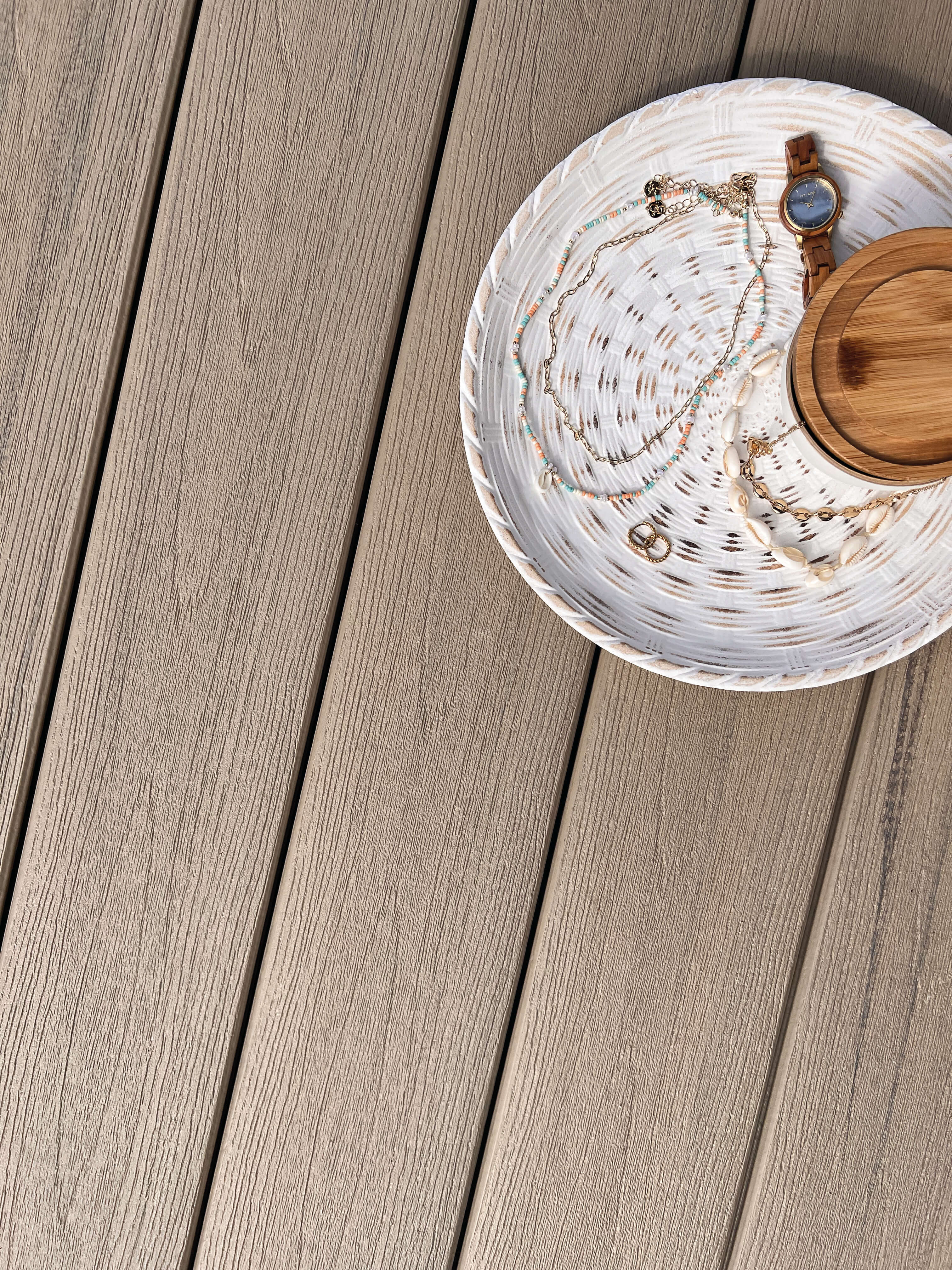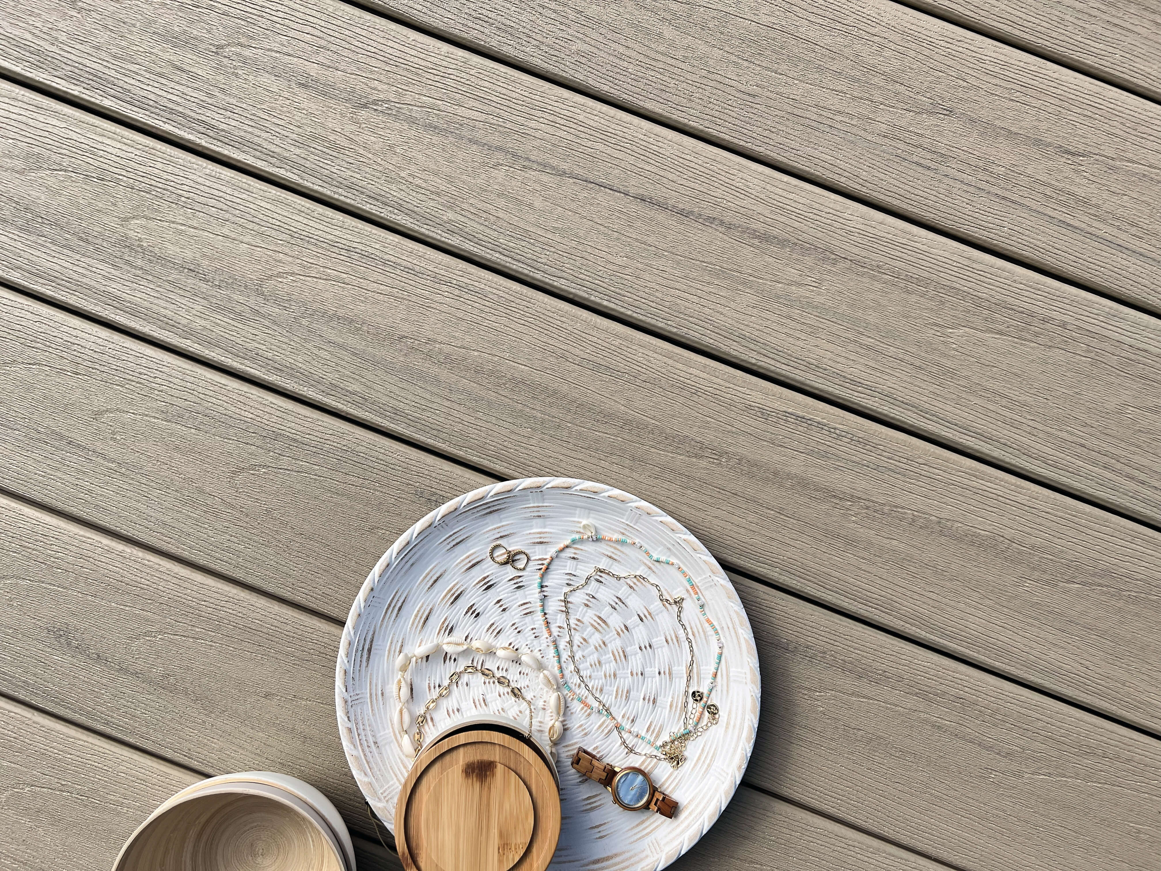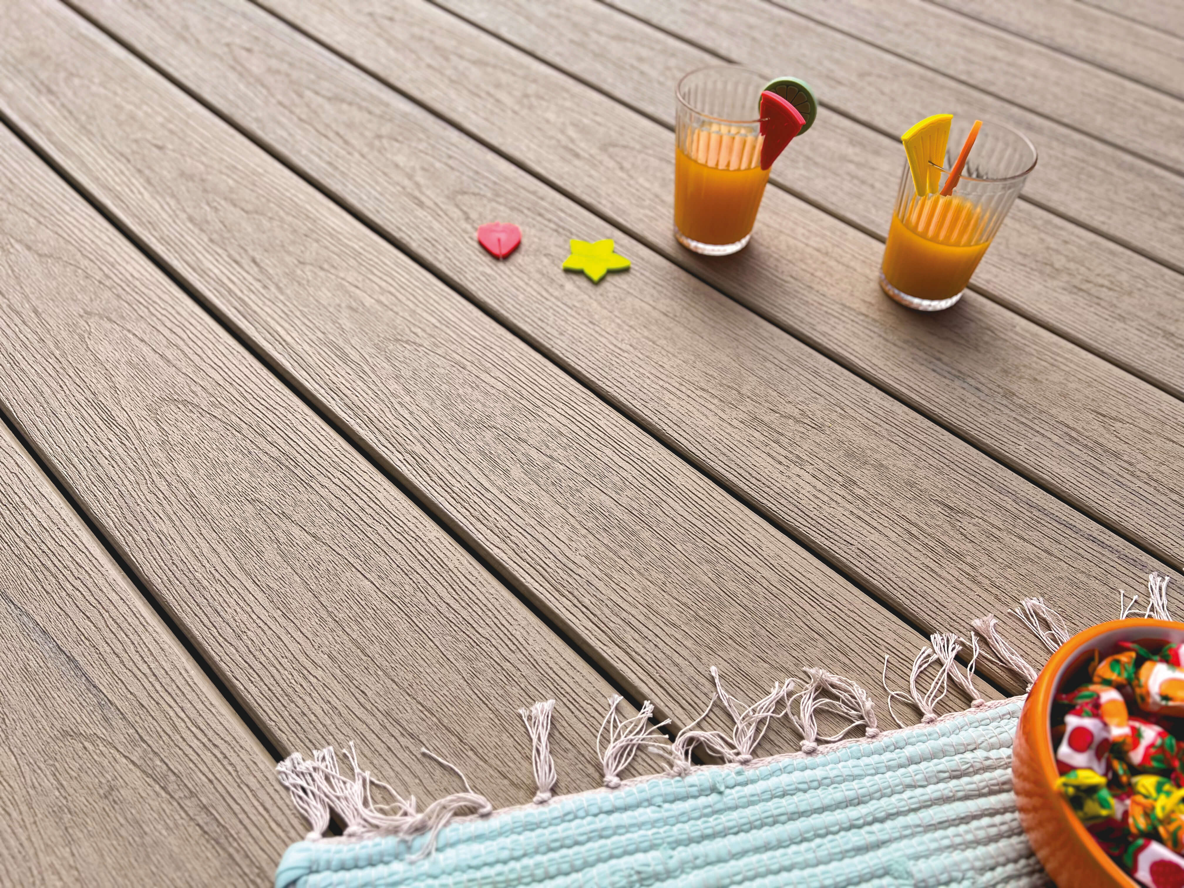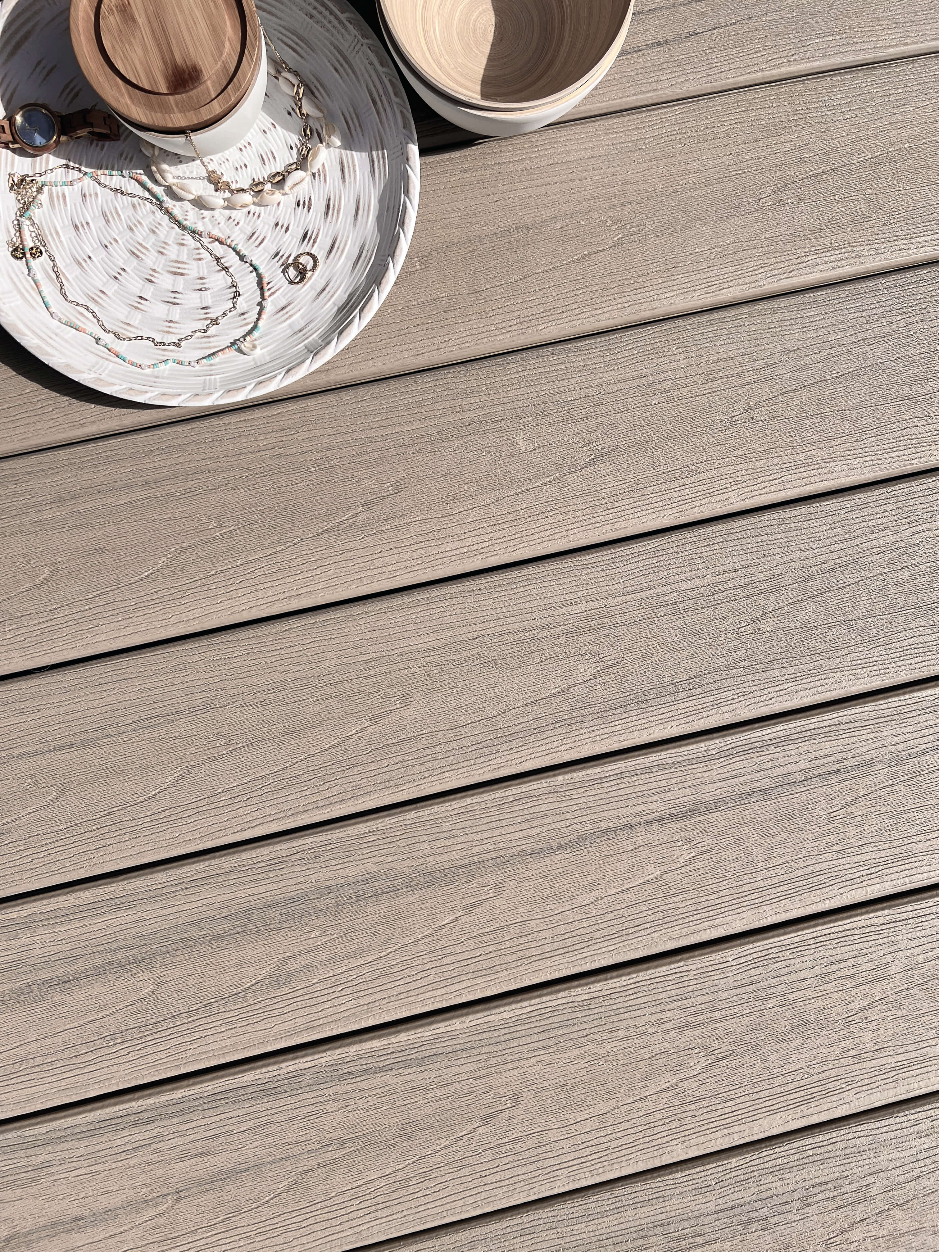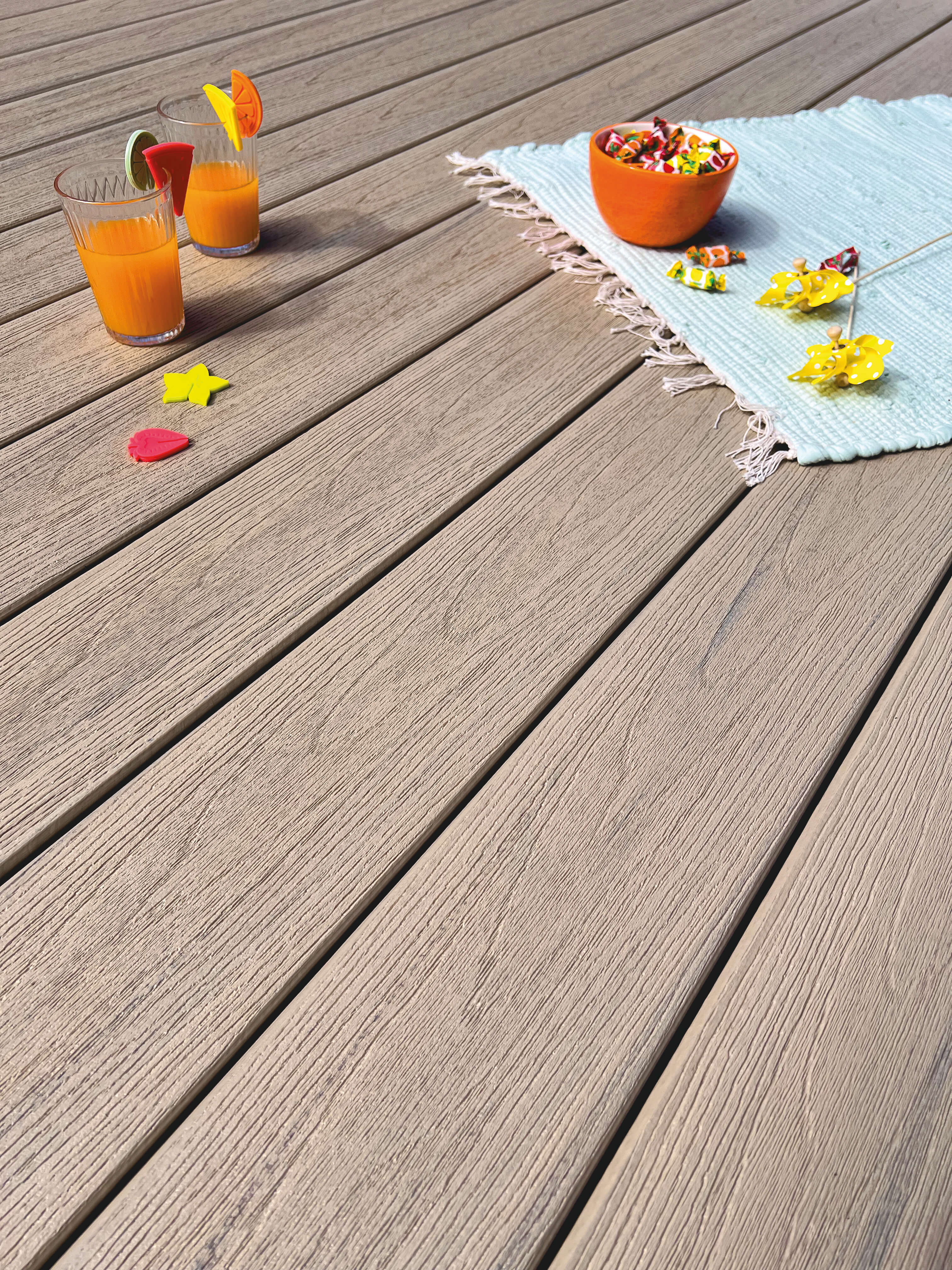 Durch die robuste Coextrusion eignet sich diese WPC-Diele ideal für Terrassen, Balkone und Poolbereiche. Sie bietet eine langlebige Optik, bleibt formstabil und ist besonders angenehm begehbar – auch barfuß.