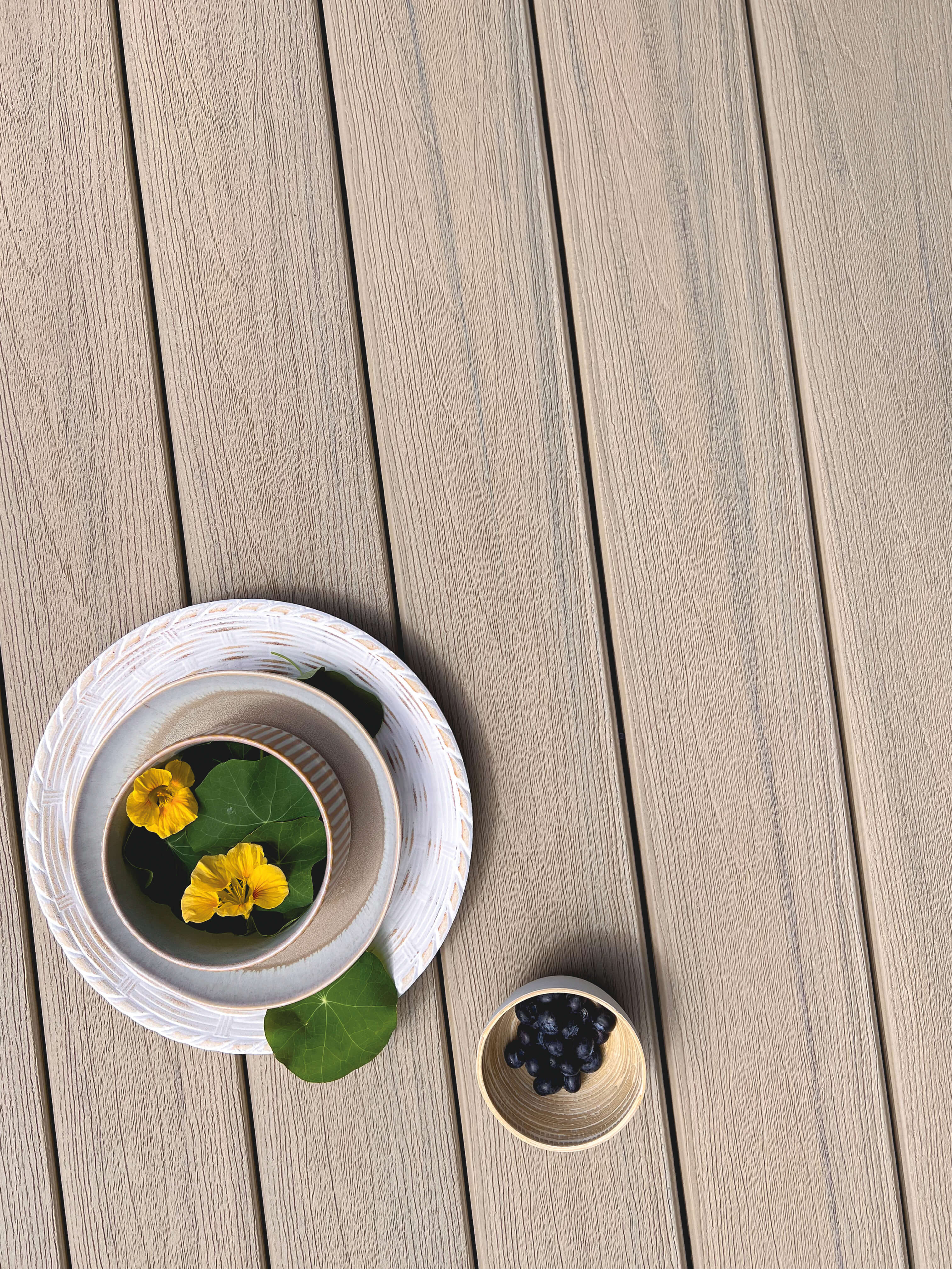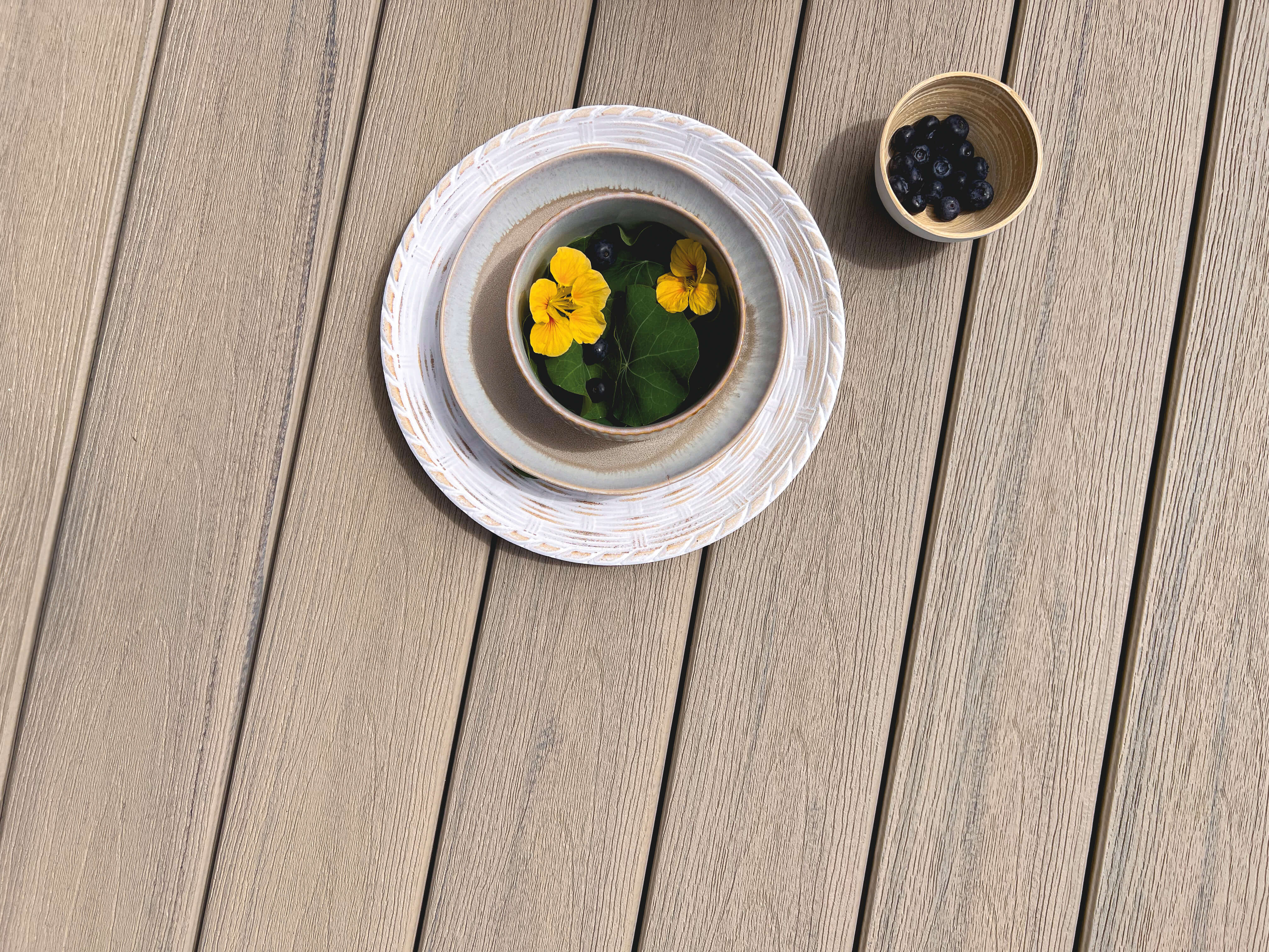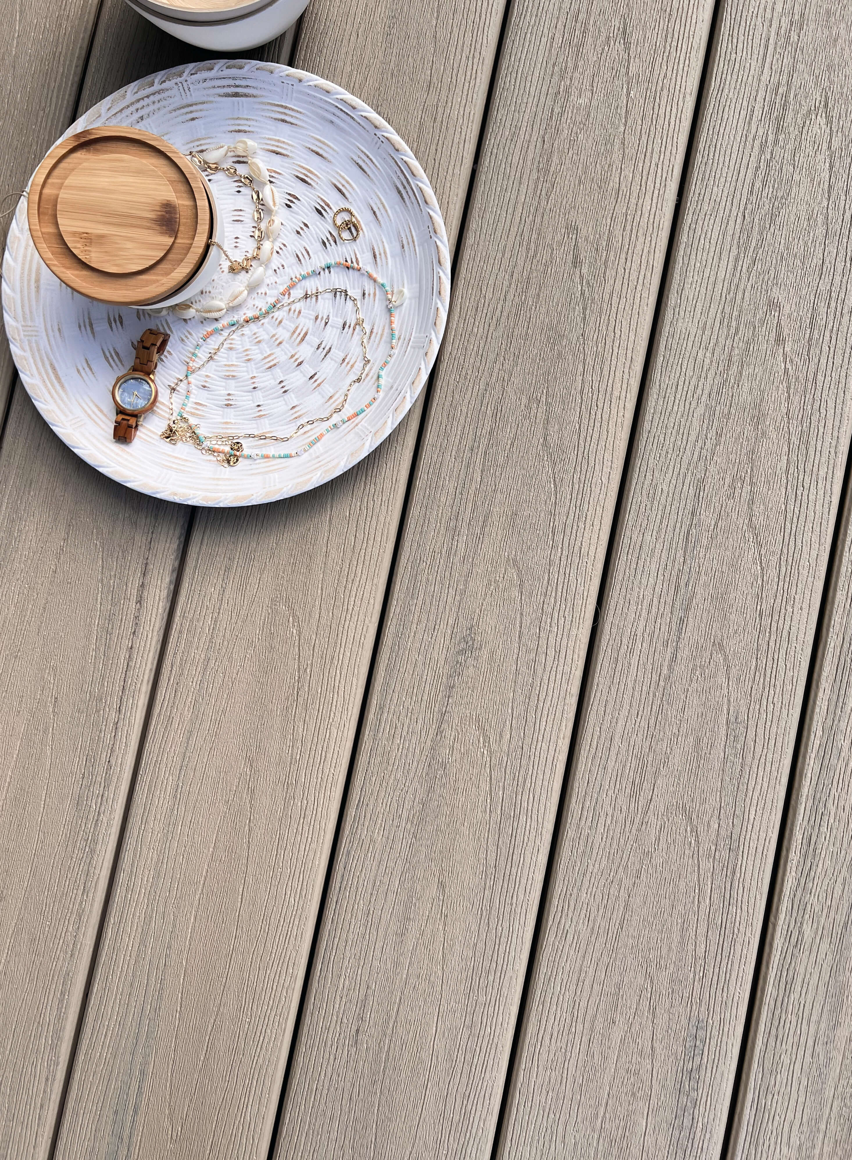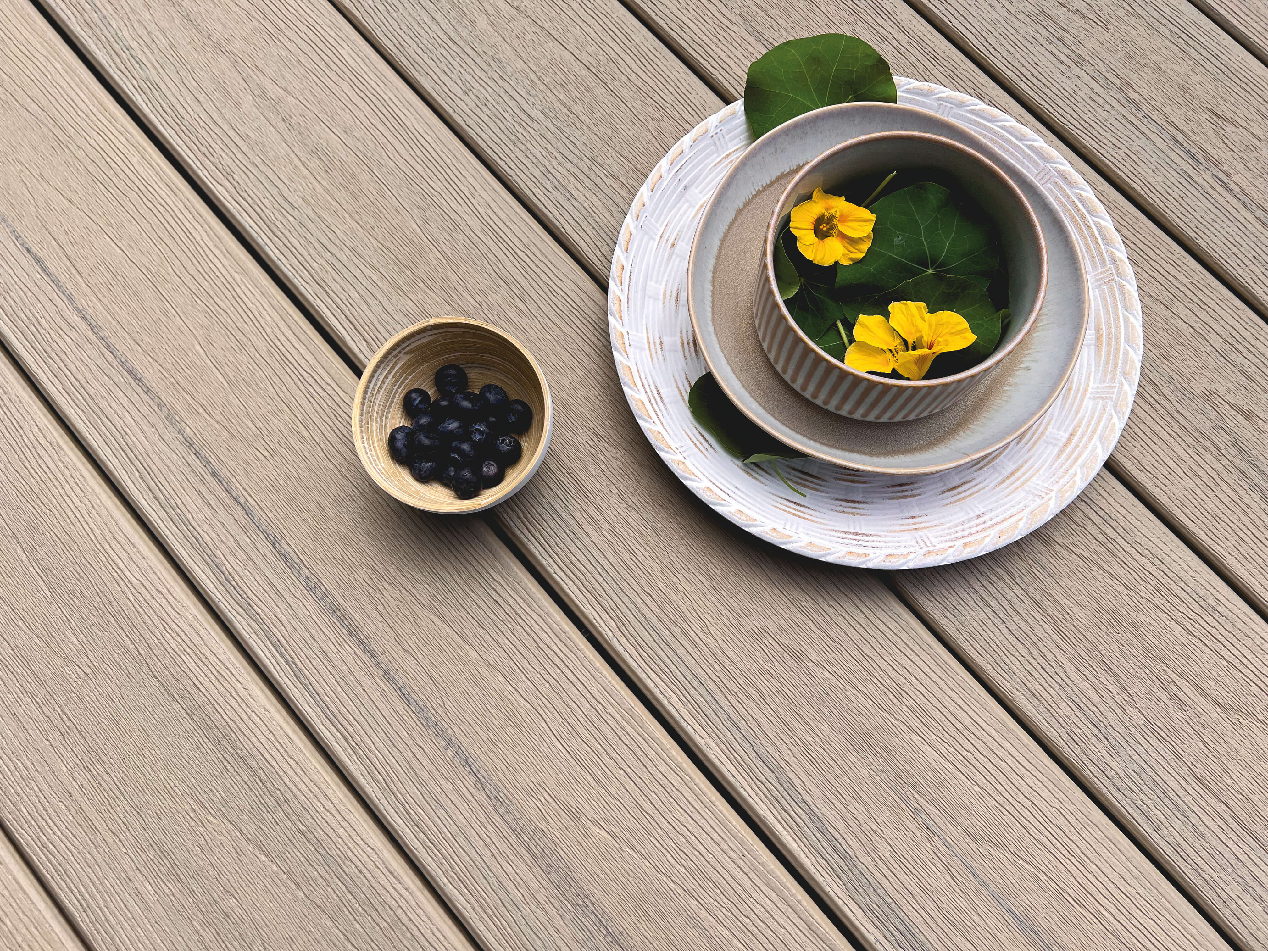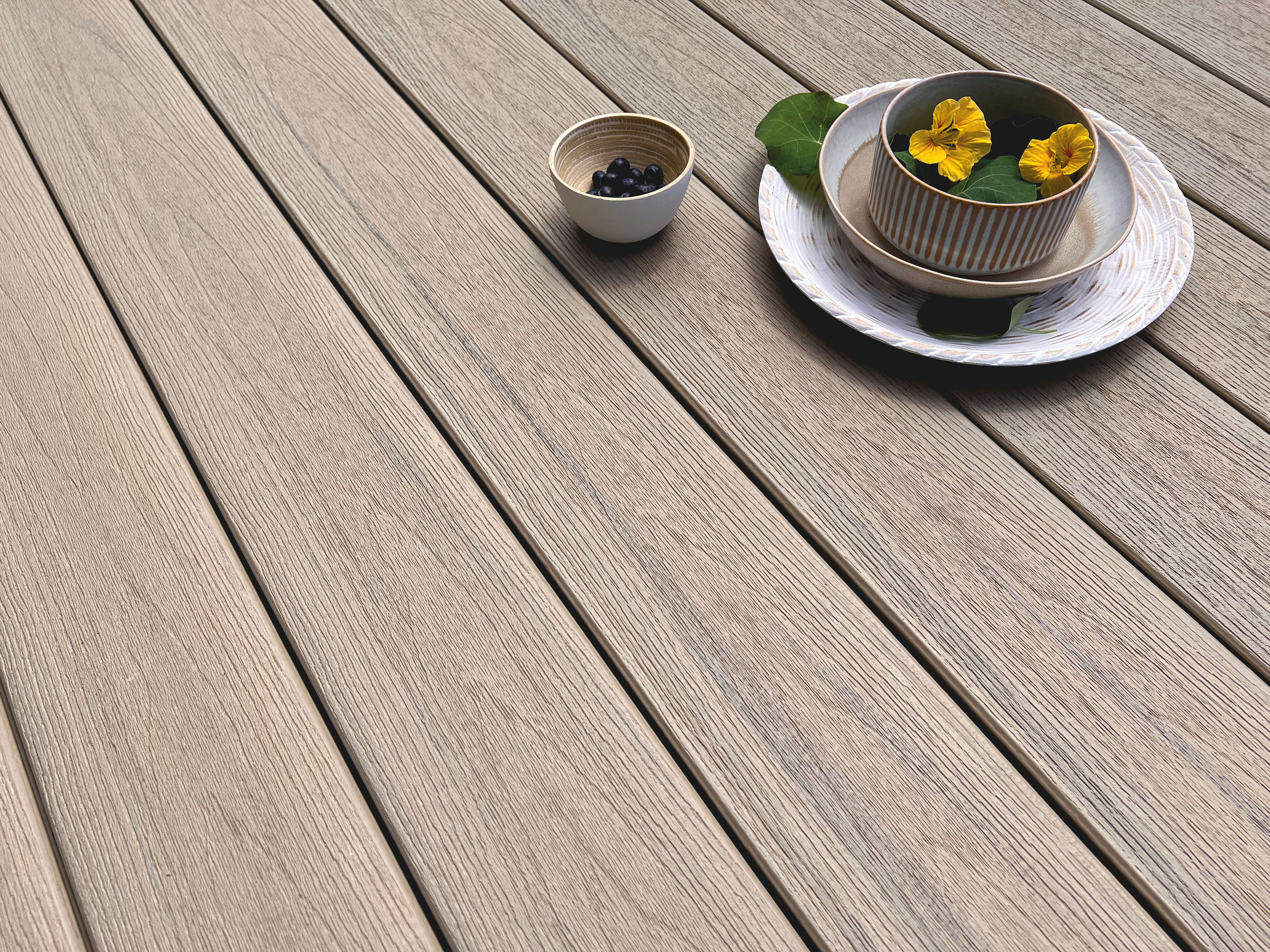 Durch die robuste Coextrusion eignet sich diese WPC-Diele ideal für Terrassen, Balkone und Poolbereiche. Sie bietet eine langlebige Optik, bleibt formstabil und ist besonders angenehm begehbar – auch barfuß.