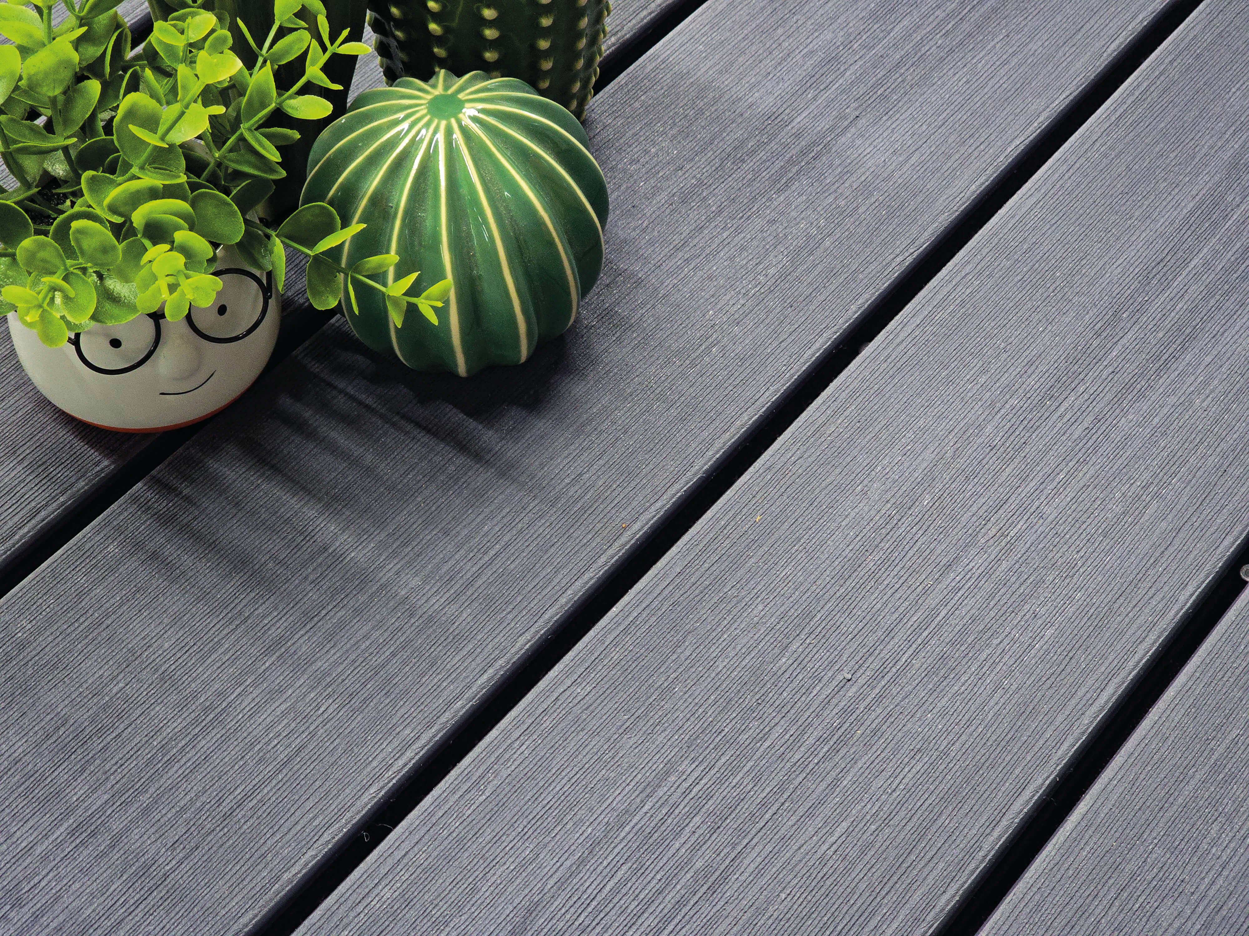 Die gebürstete Oberfläche sorgt für eine angenehme Haptik und verleiht der Diele eine natürliche, elegante Optik. Durch dezente Farbabstufungen entsteht ein harmonisches Erscheinungsbild, das besonders gut zu modernen Außenbereichen passt.