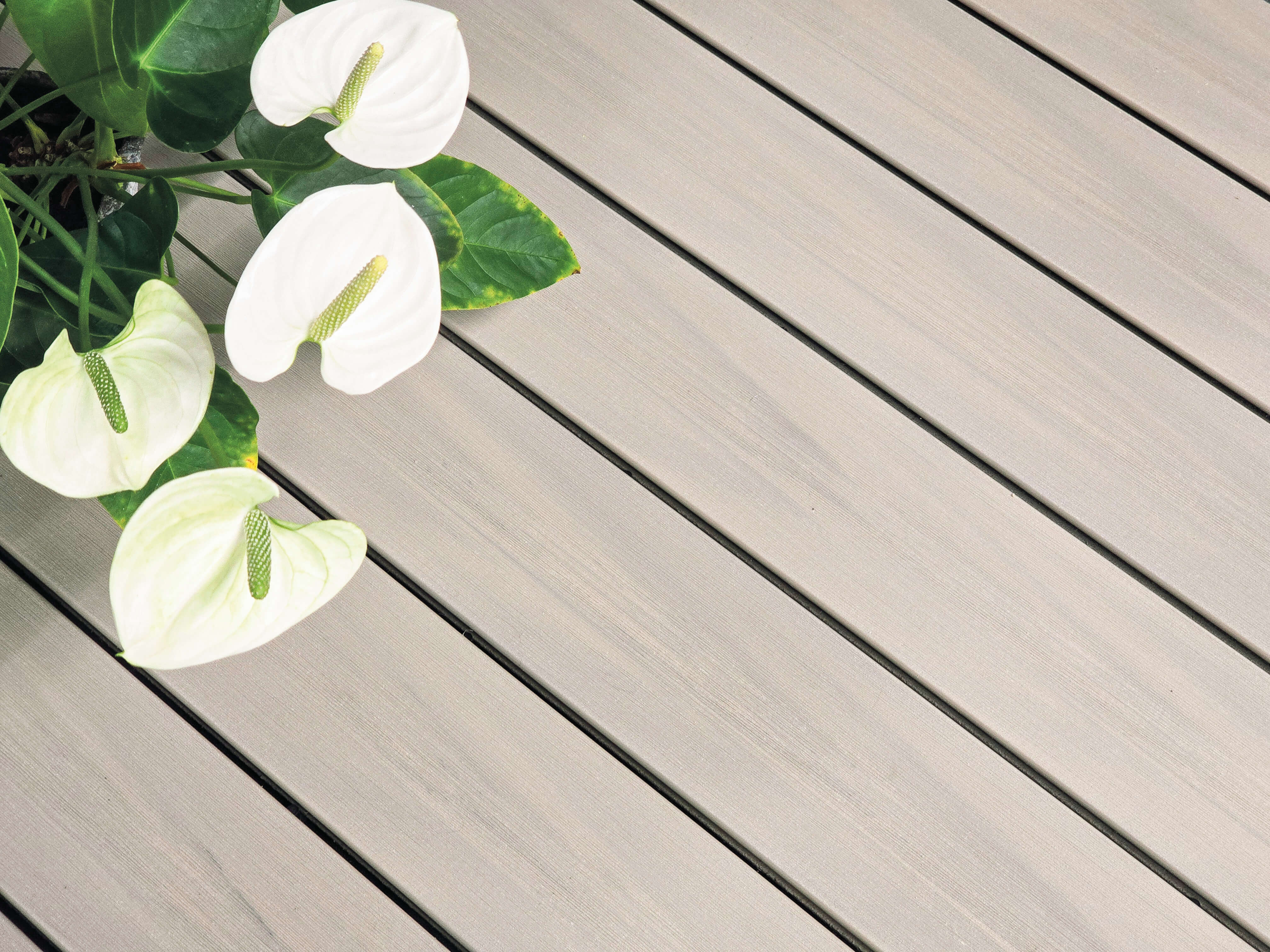 Die gebürstete Oberfläche sorgt für eine angenehme Haptik und verleiht der Diele eine natürliche, elegante Optik. Durch dezente Farbabstufungen entsteht ein harmonisches Erscheinungsbild, das besonders gut zu modernen Außenbereichen passt.